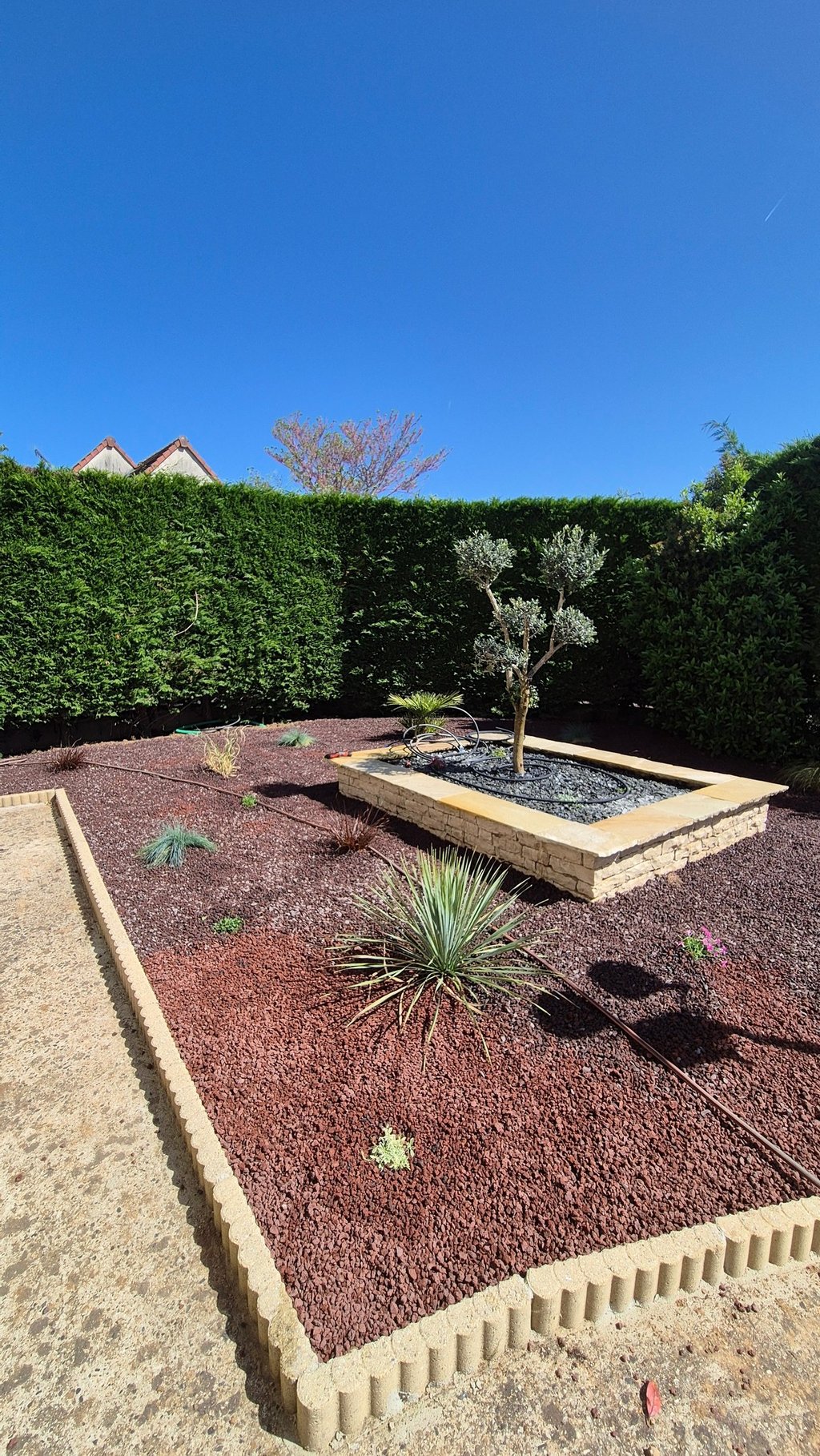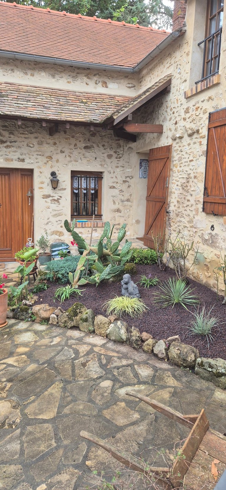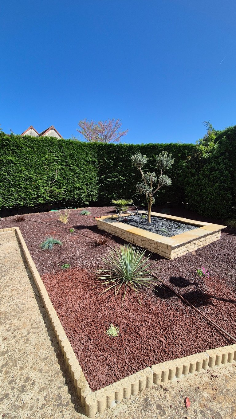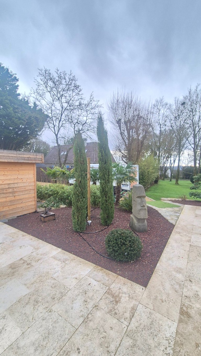 Création de coins jardins décoratifs avec bonsaï, plantes grasses et du pouzzolane, une pierre volcanique, pour sublimer et structurer l’espace extérieur. Un aménagement zen et élégant qui transforme le jardin en véritable espace de vie.