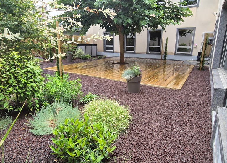 Réalisation de l’aménagement paysager de la terrasse des locaux Force Ouvrière, alliant végétalisation, convivialité et élégance urbaine. Un espace extérieur transformé en lieu de détente et de partage, au cœur de Paris.